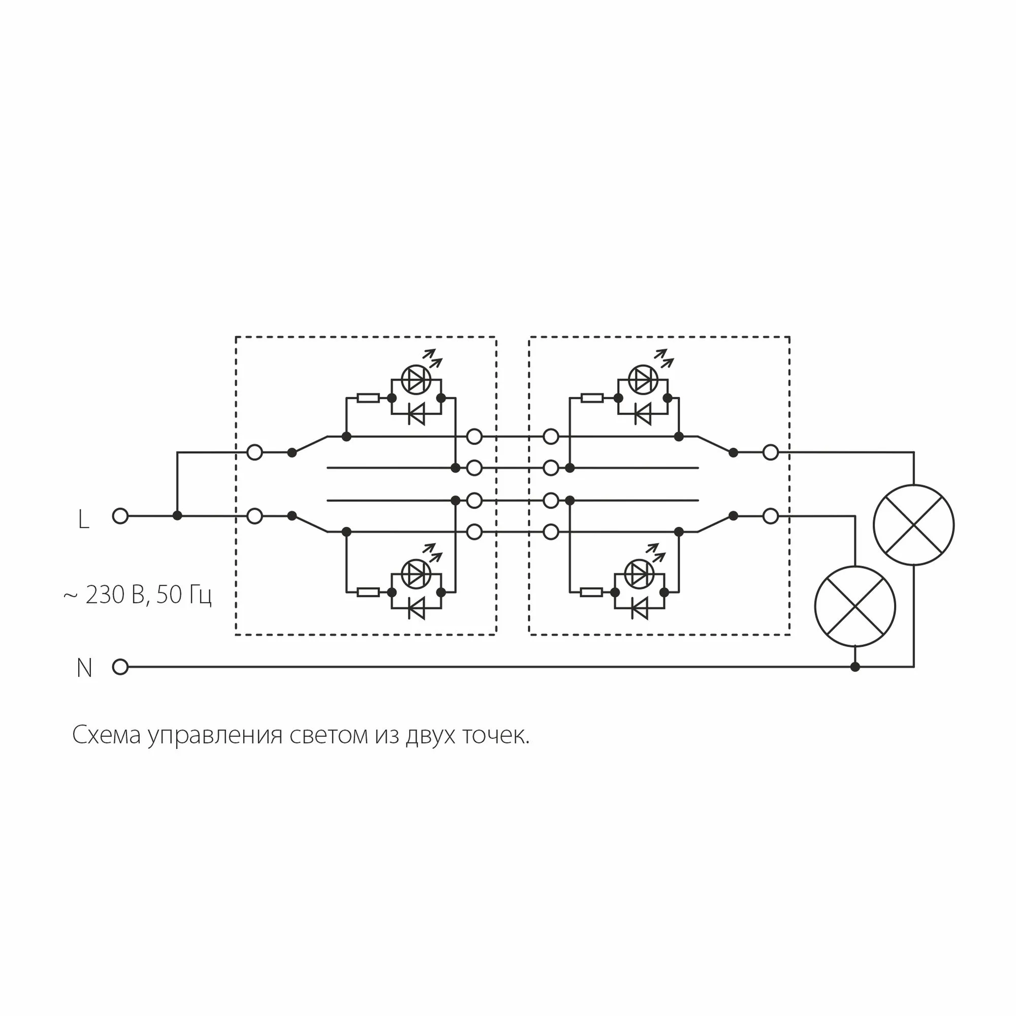 Выключатель двухклавишный проходной с подсветкой (белый) W1122101
