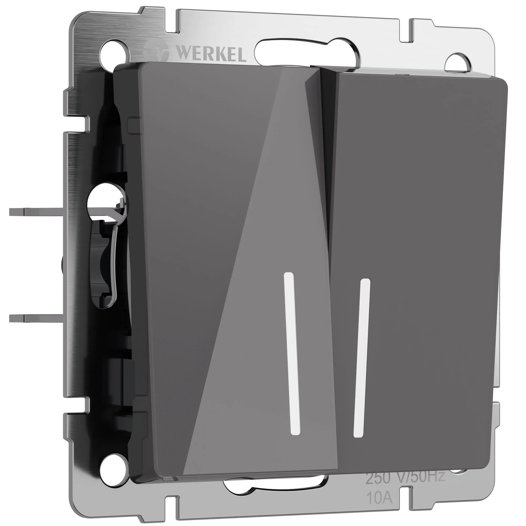 Выключатель двухклавишный проходной с подсветкой (графит акрил) W1122144